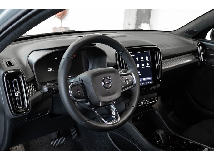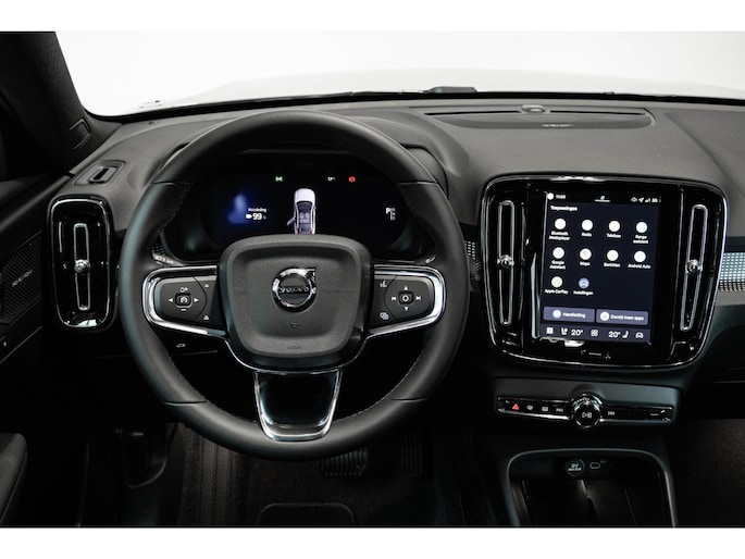 Deze Volvo EC40 is innovatie op zijn best. Hij is ontworpen als een unieke combinatie van rijplezier en zorg voor het milieu. U kunt ervoor kiezen vanwege het milieu. Maar de elektromotor biedt ook power en prestaties! Het gaat hier om een nieuwe auto, hij is nu direct leverbaar. Behaaglijk onderweg zijn? Als bestuurder geniet u van de verwarmbare voorstoelen. Net als uw bijrijder! De comfortstoelen geven precies de juiste ondersteuning voor rug en schouders. De elektrisch bedienbare achterklep opent met een druk op de knop. In weer en wind een cabriosensatie? Dat kan met het riante glazen panoramadak. Al is het nog zo fris, koude handen zijn verleden tijd door het verwarmd stuurwiel. Tot de uitrusting van deze Volvo behoren ook 20 inch lichtmetalen velgen, LED koplampen, extra getint glas, in delen neerklapbare achterbank, verstelbare lendensteunen en snelheidsafhankelijke stuurbekrachtiging.