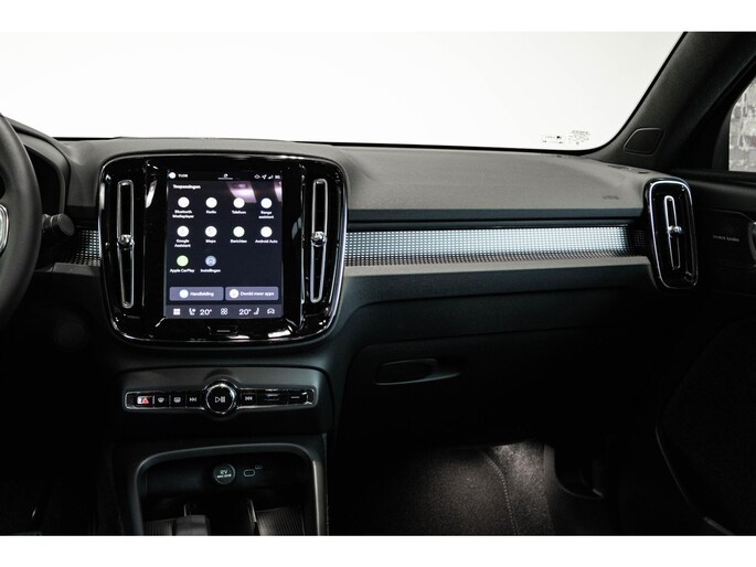 De Volvo EC40 is ook voorzien van ADAS. Deze Advanced Driver Assistence Systems fungeren als extra ogen en oren: ze houden voor u de weg in de gaten en grijpen in wanneer dat nodig is. Onderweg zorgt verkeersborddetectie ervoor dat u geen waarschuwingsbord mist. Onbedoeld buiten de rijstrook raken wordt voorkomen door het Lane-keeping systeem. Actieve dodehoekdetectie herkent andere voertuigen die in uw dode hoek rijden. Met dit hulpsysteem bent u veiliger en comfortabeler onderweg. De auto is ook uitgerust met forward collision warning system, hill hold functie, brake assist, vermoeidheidsherkenning en bandenspanningcontrolesysteem.