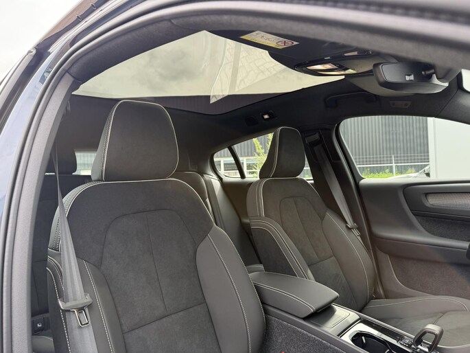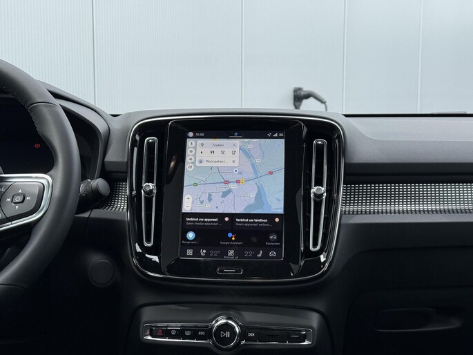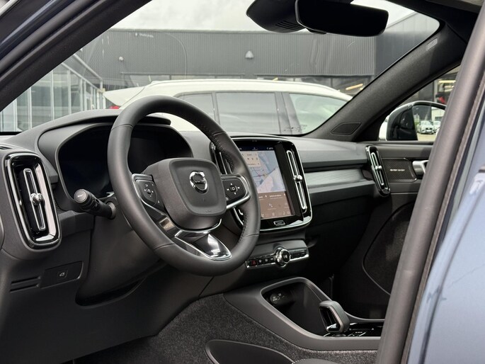 Hightech elektronica en emissievrij rijden komen samen in de Volvo EC40. Deze auto biedt een onvergelijkbare rijbeleving dankzij de volledig elektrische aandrijflijn. De aandrijflijn maakt gebruik van de meest moderne accutechniek, zodat het opladen in zo kort mogelijke tijd gebeurt. Het rijbereik van deze auto is groot genoeg om er de meest voorkomende dagelijkse ritten mee te maken. Koude start? Niet met de verwarmbare voorstoelen! Onderweg zorgen de comfortstoelen voor een ontspannen rit. Een praktische extra is de elektrisch bedienbare achterklep die opent en sluit met een druk op de knop. Het glazen panoramadak zorgt ervoor dat u zich omringd voelt door de omgeving. Een heerlijk luxe optie van deze auto is het verwarmbare stuurwiel. In deze auto profiteert u onder andere ook van: 19 inch lichtmetalen velgen, LED koplampen, in delen neerklapbare achterbank, verstelbare lendensteunen en snelheidsafhankelijke stuurbekrachtiging.