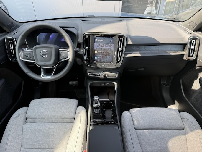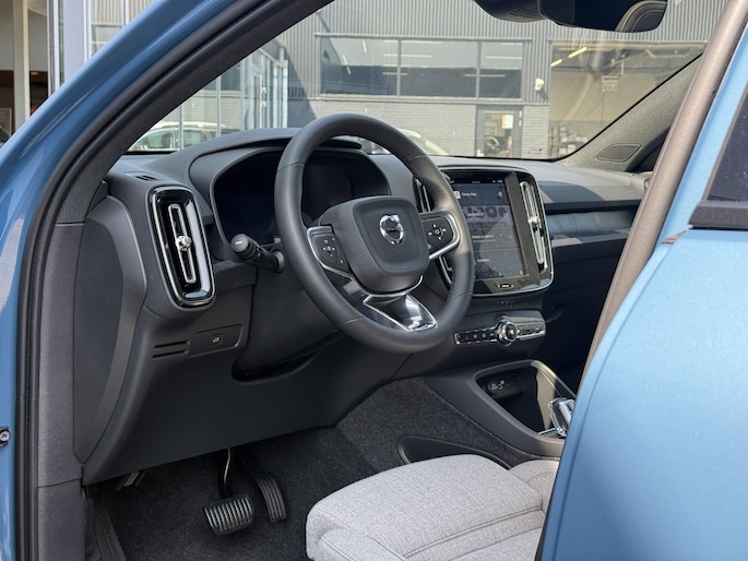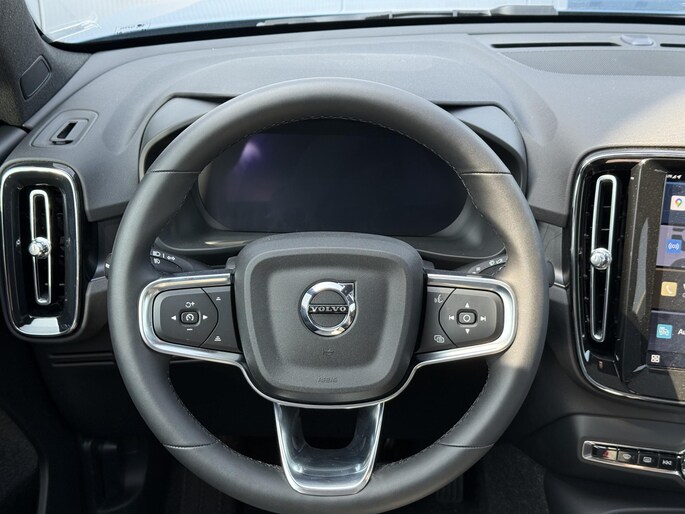 Duurzaam en dynamisch, de Volvo EC40 verenigt deze twee uitersten in zich. Een elektrische auto is echt niet meer alleen voor korte ritjes. Het rijbereik van deze auto biedt voldoende ruimte voor uw dagelijkse ritten. Daardoor kan het opladen vaak 's nachts gebeuren. Een weldaad voor u en uw bijrijder: deze Volvo EC40 heeft verwarmbare voorstoelen. Zitten in weldadige comfortstoelen : uw rug zal u dankbaar zijn. Het glazen panoramadak biedt u een breed zicht op de omgeving. Comfortabel houvast krijgt u van het verwarmd stuurwiel. Bij de uitrusting van deze Volvo horen onder meer 19 inch lichtmetalen velgen, LED koplampen, extra getint glas, in delen neerklapbare achterbank, verstelbare lendensteunen en snelheidsafhankelijke stuurbekrachtiging.