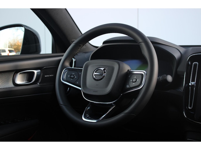 Wat Volvo biedt, is al jaren ongeëvenaard. Duurzaam, innovatief, comfortabel en veilig: 'Volvo for life'. Nooit meer naar de pomp! De elektromotor opladen en rijden maar! Deze nieuwe auto is nu uit voorraad leverbaar. De stoelverwarming maakt het interieur snel behaaglijk op koude dagen. De elektrische achterklep opent met een druk op de knop, zodat u gemakkelijk toegang heeft tot de bagageruimte. In weer en wind een cabriosensatie? Dat kan met het riante glazen panoramadak. Wind, sneeuw, hagel, regen... allemaal vergeten als u het verwarmd stuurwiel in handen heeft. Tot de uitrusting behoren ook 20 inch lichtmetalen velgen, LED koplampen, in delen neerklapbare achterbank, verstelbare lendensteunen en snelheidsafhankelijke stuurbekrachtiging.