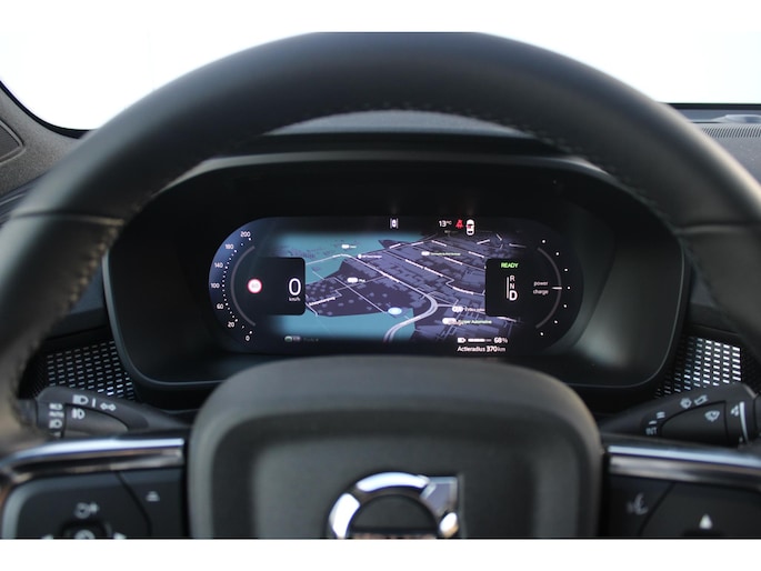 Het digitale dashboard zorgt voor een super functionele display van reisinformatie. Het gebruik van de 360 graden camera op deze auto zorgt voor een groter gezichtsveld en helpt de dode hoeken te elimineren. Adaptive cruise control houdt de ingestelde snelheid vast en houdt afstand tot het voertuig voor u. Hoe is het met de banden, de accu en andere onderdelen? Connected Services maakt het inzichtelijk, 24/7 via de app. De geluidskwaliteit aan boord is 'next level' dankzij het high performance audiosysteem. Ook is de Volvo uitgerust met: dashboard met spraakbediening, full map navigatiesysteem, achteropkomend verkeer waarschuwing, kruisend verkeer detectie, electronic climate control en draadloos opladen.