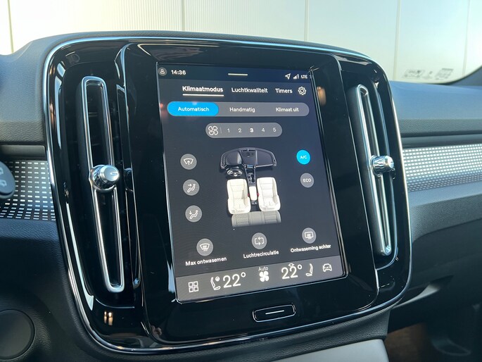 Veiligheid-prestatie-innovatie. Dat zijn de belangrijkste kenmerken waarmee Volvo al jaren bekend staat. Of, zoals dit merk het noemt: 'Volvo for life'. Milieuvriendelijk, stil en uitstekende rijprestaties: dat zijn de voordelen van de elektromotor. De krachtige motor geeft deze Volvo uitstekende prestaties. Gemak is alles. Daarom heeft deze auto een elektrisch bediend glazen panorama dak en een elektrisch bedienbare achterklep. Regen, wind, hagel, sneeuw? Als het buiten guur is, doet de stoelverwarming z'n weldadige werk! Beknibbelen op comfort is er niet bij met deze Volvo EX40. Hij is zelfs voorzien van een verwarmd stuurwiel! Bij de uitrusting van deze Volvo horen onder meer 20 inch lichtmetalen velgen, LED koplampen, extra getint glas, in delen neerklapbare achterbank, verstelbare lendensteunen en snelheidsafhankelijke stuurbekrachtiging. Het digitale dashboard zorgt voor een super functionele display van reisinformatie. Met de 360 graden camera op deze auto wordt het rijden een heel stuk veiliger, dankzij het optimale zicht dat het biedt. Met adaptive cruise control houdt deze auto automatisch afstand tot uw voorligger. Navigatie, onderhoudsstatus, vergrendeling, audio... de mogelijkheden van remote services zijn haast oneindig. Ook deze auto laat zich bedienen en analyseren via uw smartphone! Het complete geluidsspectrum van de hi-fi krijgt een extra boost door het high performance audiosysteem. Natuurlijk behoren dashboard met spraakbediening, navigatiesysteem, achteropkomend verkeer waarschuwing, electronic climate control, draadloos opladen en DAB ontvangst ook tot de uitrusting van deze complete auto. Deze Volvo biedt u niet alleen comfort en rijplezier, maar ook veiligheid. Actieve veiligheidssystemen houden voor u de weg in de gaten en reageren op onvoorziene situaties voordat u dat kunt. Een belangrijke bijdrage aan de veiligheid onderweg levert de verkeersbord-detectie in deze Volvo. Een camera houdt de juiste koers binnen de rijstrook in de gaten en het Lane-keeping systeem corrigeert bij afwijkingen. Actieve dodehoekdetectie geeft een waarschuwingssignaal wanneer een ander voertuig in uw dode hoek rijdt. Dit verkleint de kans op een aanrijding. De auto is ook uitgerust met forward collision warning system, hill hold functie, vermoeidheidsherkenning, frontale botsbescherming en bandenspanningcontrolesysteem. U wilt ook elektrisch rijden? Neem nu contact met ons op om een proefrit te maken.