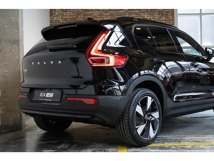 Hij is doordacht innovatief en duurzaam als geen ander: de elektrische Volvo EX40 biedt met zijn elektrische aandrijving een ongekende rijervaring. Met zijn moderne accutechniek levert deze auto uitstekende prestaties, met een rijbereik dat genoeg is voor alle gewone ritten. En met een eigen laadpunt kunt u de accu's opladen terwijl u slaapt. We hebben het hier over een nieuwe auto, hij is nu direct leverbaar. Inladen is een eitje met de elektrisch bedienbare achterklep. En voor een frisse wind tijdens de rit is er het elektrisch bediende glazen panorama dak. Deze Volvo EX40 legt bestuurder én bijrijder compleet in de watten met de verwarmbare voorstoelen. Een ommetje of een lange trip? De comfortstoelen zorgen elke keer voor een goede zithouding! Aan een fijn opwarmertje in de kille dagen is gedacht, in de vorm van een verwarmd stuurwiel. U wordt in deze auto ook getrakteerd op 19 inch lichtmetalen velgen, LED koplampen, extra getint glas, in delen neerklapbare achterbank, verstelbare lendensteunen en snelheidsafhankelijke stuurbekrachtiging.