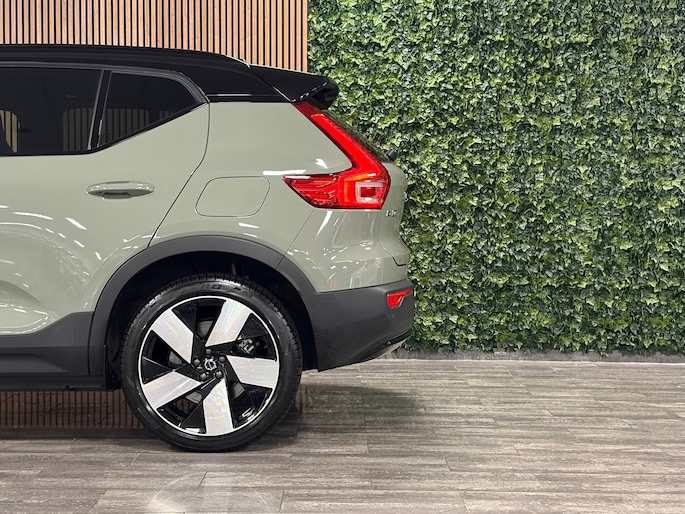 Single Motor Extended Range Ultra 82 kWh | Trekhaak | Schuifdak | 360° Camera | Harman Kardon | Adaptieve Cruise Control | Bestuurdersstoel elektrisch geheugen | Stoel en Stuurwielverwarming | 20 Inch | Passagiersstoel elektrisch | Microtech / alcantara bekleding met wit stiksel en bies | Zitting verlenging voorstoelen | Pilot Assist | BLIS Dode Hoek Detectie | Warmtepomp | Google Infotainment | Keyless Drive | Verlichtingspack 2 | Parkeersensoren voor+achter | Privacy Glass | Elektrisch bedienbare achterklep | Draadloos telefoon opladen | DAB Radio | Apple Carplay/Android Auto | Volvo On Call met mobiele App functie | Sage Green Metallic |