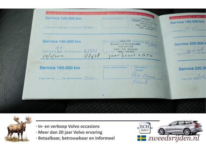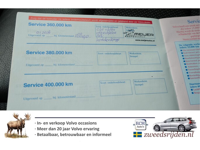 Optioneel afleverpakket (€ 695): Zweedsrijden afleverbeurt: Bij Zweedsrijden afleverbeurt krijg je: * Grote beurt * Nieuwe APK keuring * Volledige technische controle + verhelpen eventuele gebreken. * Slijtagedelen kunnen tot de volgende beurt mee * 3 maand garantie draaiende delen motor + bak * Verhelpen eventuele elektrische storingen Met meer dan 20 jaar Volvo expertise weten we waar de zwakke plekken zitten en hoe deze te verhelpen zijn.