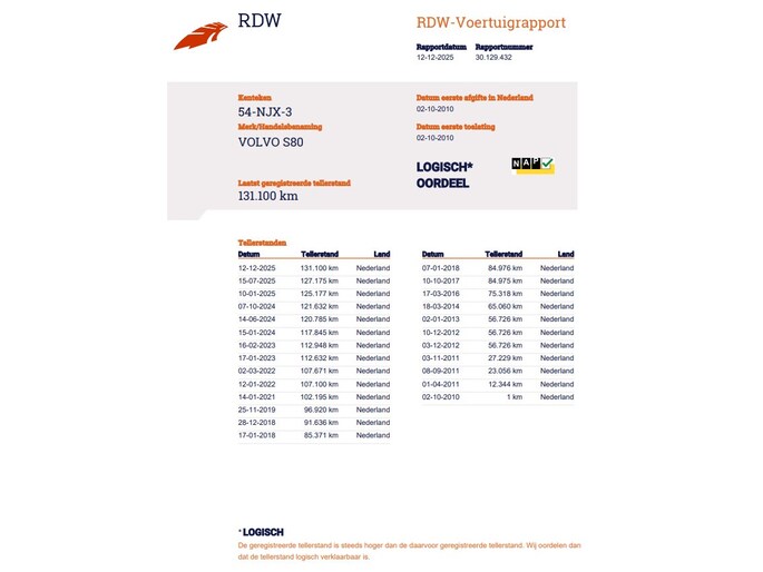 Kilometerstand gecontroleerd