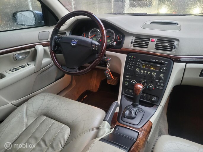 Volvo S80 T6 youngtimer automaat met lange APK, groot onderhoud incl. distributieriem & versnellingsbak revisie, parkeersensoren, climate control, elektrische stoelverstelling, xenonverlichting, lederen bekleding, stoelverwarming, schuif/kanteldak, afneembare trekhaak en natuurlijk rijcomfort.