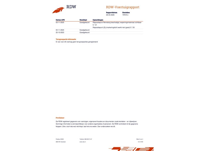 Kilometerstand gecontroleerd