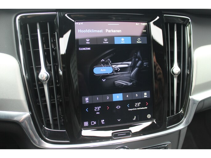 Met de nieuwste technologieën aan boord is deze Volvo in staat om zelf te reageren op potentieel gevaarlijke situaties op de weg. Uiteenlopende functies maakt de head-up display zichtbaar in de voorruit. Dat de auto steeds meer taken van de bestuurder overneemt, merkt u bijvoorbeeld aan het systeem voor verkeersbord-detectie in deze Volvo. Deze Volvo S90 is ook behulpzaam als het gaat om een rechte koers. Het Lane-keeping systeem signaleert en corrigeert als u onbedoeld de rijstrooklijnen dreigt te overschrijden. In deze Volvo vinden we verder een dodehoekdetector detectiesysteem, forward collision warning system, hill hold functie, brake assist, vermoeidheidsherkenning en bandenspanningcontrolesysteem.