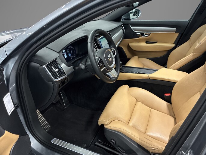 Met zijn dynamische eigenschappen belooft deze Volvo S90 jou een heleboel rijplezier. Hij is ontwikkeld op een geavanceerd onderstel en biedt altijd een veilig weggedrag. Met een viercilinder benzinemotor en een automatische transmissie beschikt deze Volvo over uitstekende prestaties. Een fraai lederen interieur, dat in daglicht baadt dankzij het elektrisch bediende glazen panorama dak. En voor 'handsfree' in- en uitladen vind je aan de achterzijde de elektrisch bedienbare achterklep. Winterse omstandigheden? Geniet dan van het comfort van de stoelverwarming! Bij de uitrusting van deze auto horen onder meer 18 inch lichtmetalen velgen, LED koplampen en verstelbare lendensteunen.
