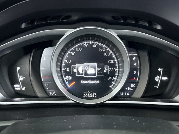 Zoals u mag verwachten van deze Volvo V40 is hij uitgerust met een reeks aan actieve veiligheidssystemen. Kop-staartbotsingen vormen een belangrijk deel van de meest voorkomende aanrijdingen. De forward collision warning van deze auto voorkomt zulke botsingen geheel of reduceert de ernst van de schade aanzienlijk. Wegrijden op een helling is kinderspel met hill hold control. Deze functie houdt de handrem automatisch vast op een steile ondergrond. De auto is ook uitgerust met brake assist en bandenspanningcontrolesysteem.
