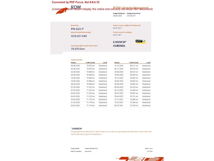 Kilometerstand gecontroleerd