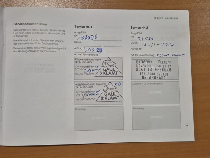 • Afleverbeurt conform onderhoudsschema met volle tank.