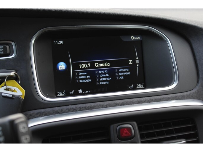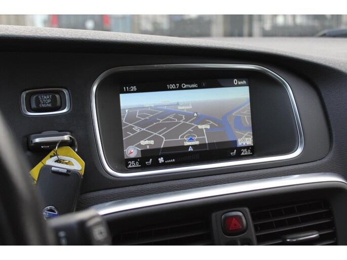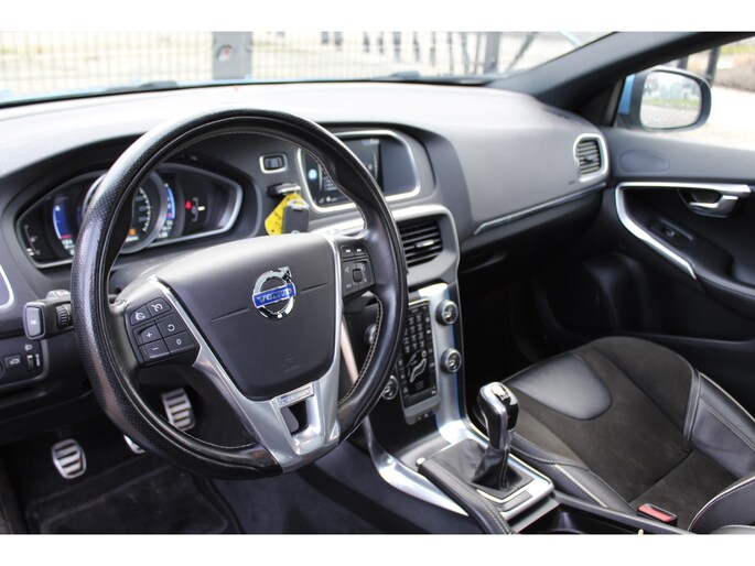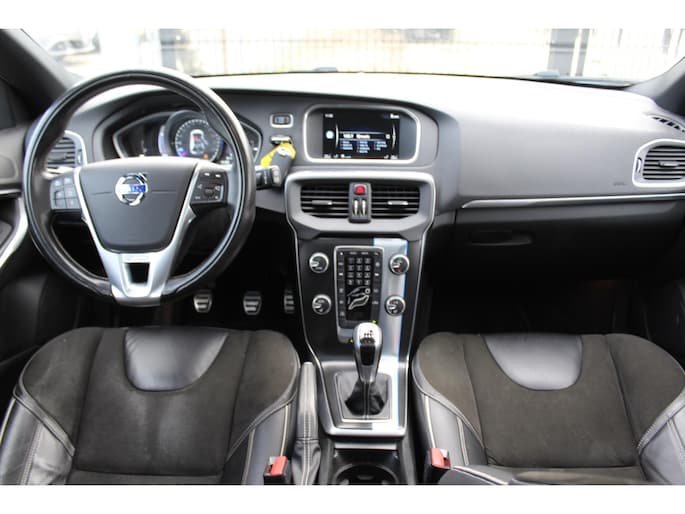 Met spraakbediening of de knoppen op het stuur regelt u het audio-installatiesysteem en het navigatiesysteem met harde schijf, terwijl u uw blik op de weg gericht houdt. Deze Volvo V40 is voorzien van sensoren aan de achterzijde om een achteropkomend verkeer waarschuwing te geven als de afstand tussen u en een achterligger te klein is. Het comfort wordt verhoogd door de aanwezige automatische airconditioning. Parkeersensoren helpen u tijdens het in- en uitparkeren. Er is cruise control aan boord, voor veilige en zuinige kilometers. De uitrusting van deze auto is met R-design, keyless entry, lederen stuur, isofix-aansluiting, centrale deurvergrendeling met afstandsbediening en boordcomputer behoorlijk compleet.