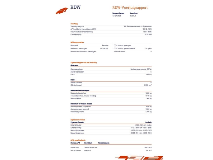 Kilometerstand gecontroleerd