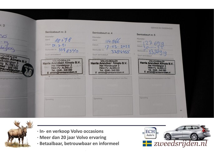 Optioneel afleverpakket (€ 695): Zweedsrijden afleverbeurt: Bij Zweedsrijden afleverbeurt krijg je: * Grote beurt * Nieuwe APK keuring * Volledige technische controle + verhelpen eventuele gebreken. * Slijtagedelen kunnen tot de volgende beurt mee * 3 maand garantie draaiende delen motor + bak * Verhelpen eventuele elektrische storingen Met meer dan 20 jaar Volvo expertise weten we waar de zwakke plekken zitten en hoe deze te verhelpen zijn.