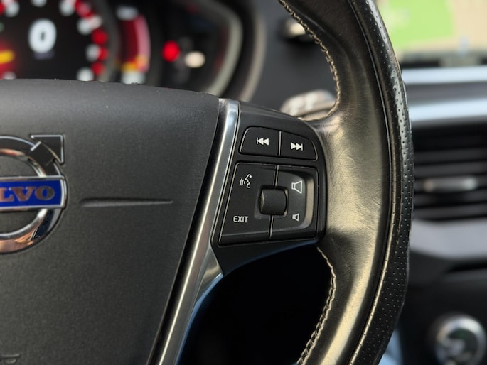 Met de ingebouwde spraakbediening kunt u de belangrijkste voertuigsystemen bedienen met stemcommando's. De speciale app verbindt met Connected Services, die de status van vitale functies bijhoudt en waarschuwt als u bijvoorbeeld moet tanken, de bandenspanning moet controleren of olie moet bijvullen. Muziek luisteren onderweg was nog nooit zo'n genoegen! Het high performance audiosysteem levert een unieke geluidservaring. Selecteer uw reisbestemming en het navigatiesysteem met harde schijf brengt u snel waar u moet zijn. De achteropkomend verkeer waarschuwing is een mooie veiligheidsoptie, die middels sensoren in de gaten houdt wat er onderweg achter u gebeurt. De uitrusting van deze Volvo is met R-design, automatische airconditioning, parkeersensoren achter, regensensor, cruise control en dvd-systeem behoorlijk compleet.