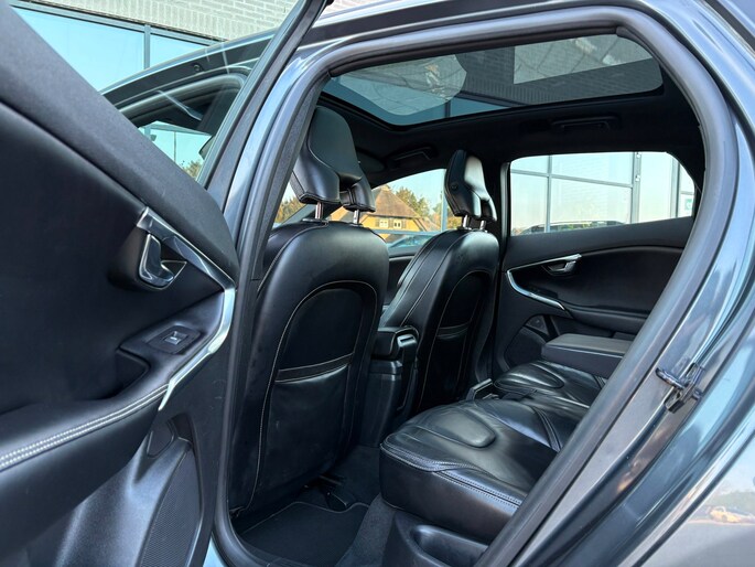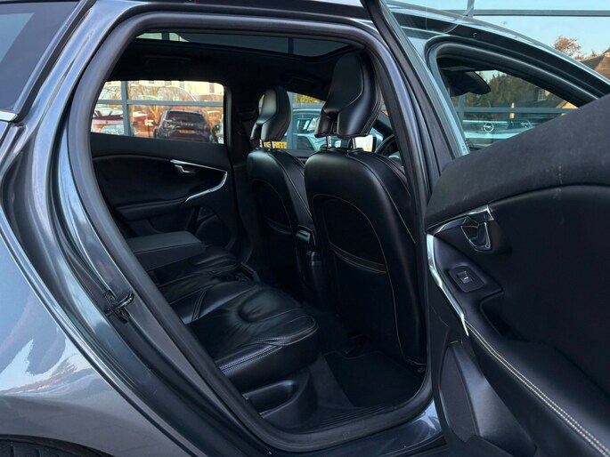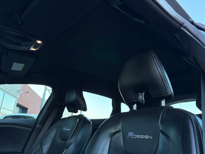 Zo is de Volvo Voorzien van een R-design pakket exterieur + interieur met speciale bumpers, achterdiffuser, sideskirts, Vol lederen bekleding, Sportstuur, digitaal display, zwarte hemel, aluminium pedalen, Aluminium interieurafwerking, leder gestickte interieurdelen, 17 inch R-design velgen, hoogglans zwarte delen exterieur, interieurverlichting, enz enz.