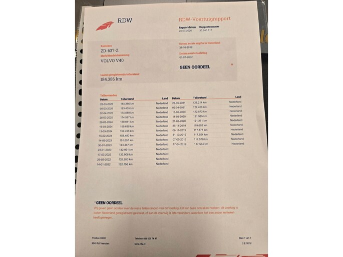 Inruiler met nw apk 4-2027-VOLVO V40 1.6 STATION 5 DEURS uit het jaar 01/07/2002 en met een km stand van 184387km en met de volgende opties: