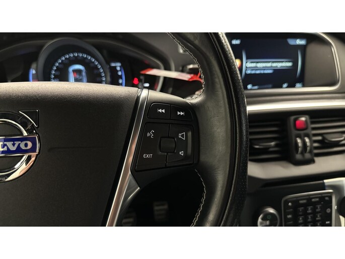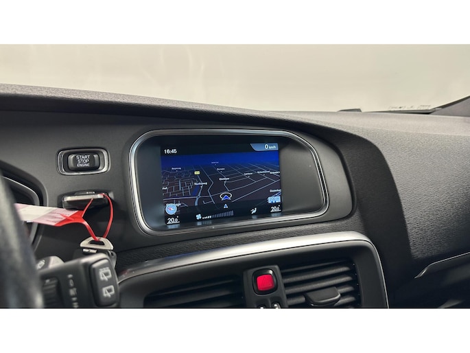 Naast handmatige bediening kunt u belangrijke functies met uw stem bedienen dankzij de ingebouwde spraakbediening. Waarheen gaat de reis? Het navigatiesysteem brengt u trefzeker ter plekke! Ook over uw schouder ziet u onderweg niet alles wat er aan de achterzijde gebeurt. Daarom heeft deze Volvo V40 een achteropkomend verkeer waarschuwing. Of het buiten nu warm is of koud, dankzij automatische airconditioning is het binnen altijd behaaglijk. Inparkeren en uitparkeren kost geen enkele moeite dankzij de parkeersensoren. En dan is deze auto ook nog eens voorzien van R-design, cruise control, isofix-aansluiting, centrale deurvergrendeling met afstandsbediening, boordcomputer en verstelbaar stuur.