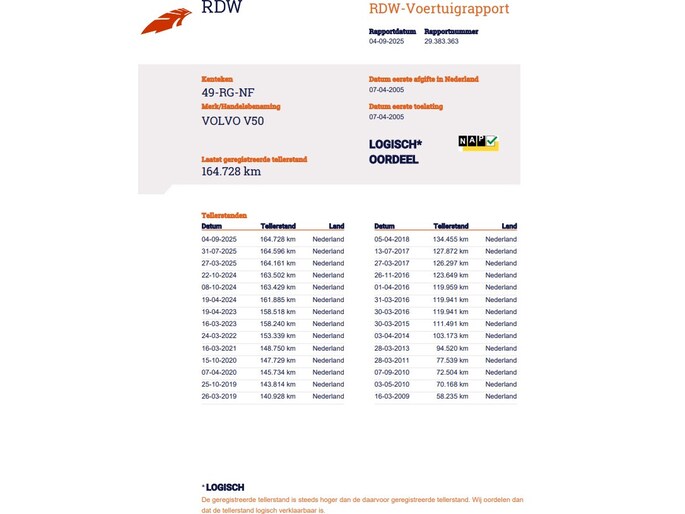 Kilometerstand gecontroleerd