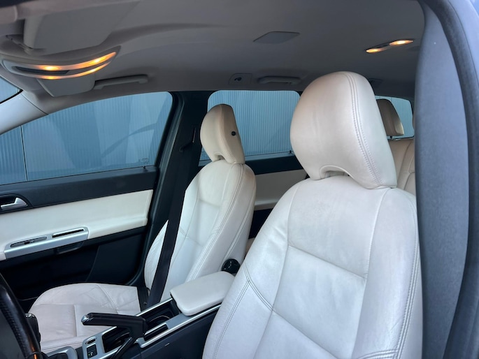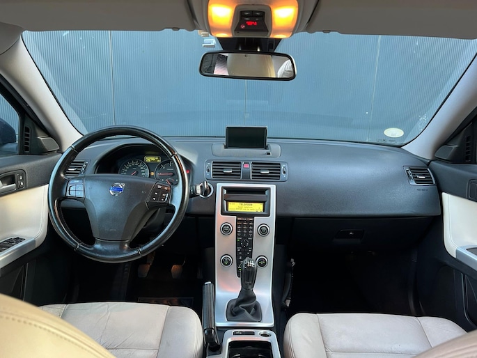 De bediening van het audio-installatiesysteem en het navigatiesysteem met harde schijf gebeurt met knoppen op het stuur. De achteropkomend verkeer waarschuwing geeft een signaal als degene achter u te dicht op u zit. Ook handig en veilig bij het wisselen van rijbaan. U verwacht natuurlijk electronic climate control in deze auto, en die is er dan ook. Kom-maar-kom-maar...ho! Zo eenvoudig is het voordeel van parkeersensoren. En zo behulpzaam! Het drukke verkeer eist onderweg al uw aandacht op. Daarom is het goed dat deze Volvo is voorzien van diverse systemen die u assisteren tijdens de rit. Een automatisch inschakelbare verlichting neemt het waar als het donker wordt of gaat schemeren, en schakelt dan automatisch de verlichting in. Op dezelfde manier "ziet" de regensensor de eerste spatjes regen en schakelt dan de ruitenwissers in, en als het harder gaat regenen zet hij de ruitenwissers ook in een snellere stand. Extra opties op deze auto zijn: cruise control, automatisch dimmende binnenspiegel, lederen stuur, centrale deurvergrendeling met afstandsbediening, bagage afdekhoes en boordcomputer.