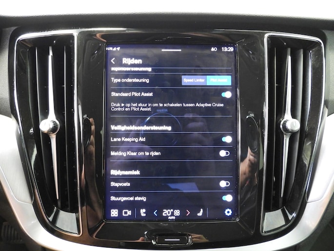 In deze auto zijn verschillende technologieën aanwezig die voor u het verkeer en de omgeving in de gaten houden en die desnoods ook kunnen remmen of bijsturen. Een belangrijke bijdrage aan de veiligheid onderweg levert de verkeersbord-detectie. Een camera houdt de juiste koers binnen de rijstrook in de gaten en het Lane-keeping systeem corrigeert bij afwijkingen. Actieve dodehoekdetectie waarschuwt als een ander voertuig zich in uw dode hoek bevindt. Dit verkleint de kans op een aanrijding. In deze Volvo vinden we verder een forward collision warning system, hill hold functie, brake assist, vermoeidheidsherkenning en bandenspanningcontrolesysteem.