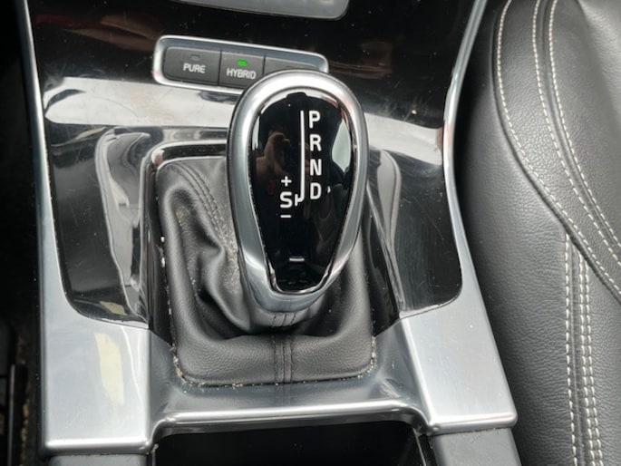 - Selectieknoppen in middenconsole met blauw verlichte omlijsting en drie keuzemogelijkheden: Pure/Hybrid/Power