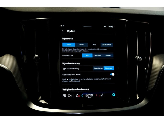 Als bestuurder van deze Volvo bent u nooit alleen. U wordt onderweg bijgestaan door technologische hulpmiddelen die samen met u de weg in de gaten houden. Als het nodig is, grijpen ze zelfs in, door te remmen of bij te sturen. De actuele snelheidslimiet, een inhaalverbod en andere verkeersborden. De verkeersborddetectie ondersteunt u tijdens elke rit. Onbedoeld buiten de rijstrook raken wordt voorkomen door het Lane-keeping systeem. Voor meer veiligheid detecteert deze auto het risico van een aanrijding tijdig via de forward collision warning. In deze Volvo vinden we verder een City Safety System, hill hold functie, brake assist, vermoeidheidsherkenning en bandenspanningcontrolesysteem.