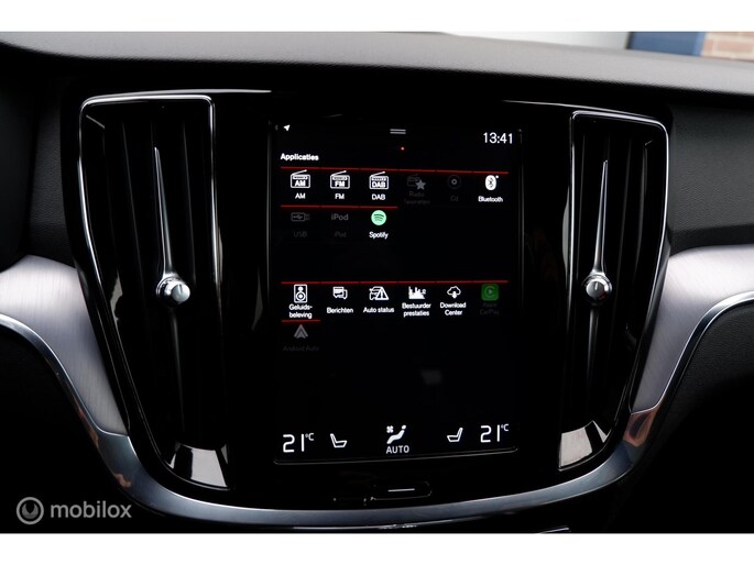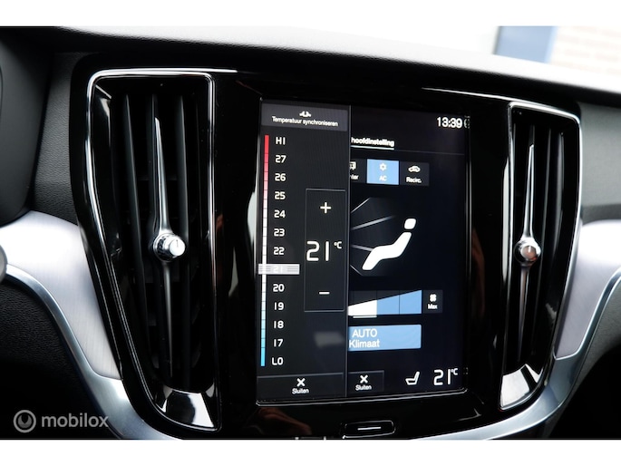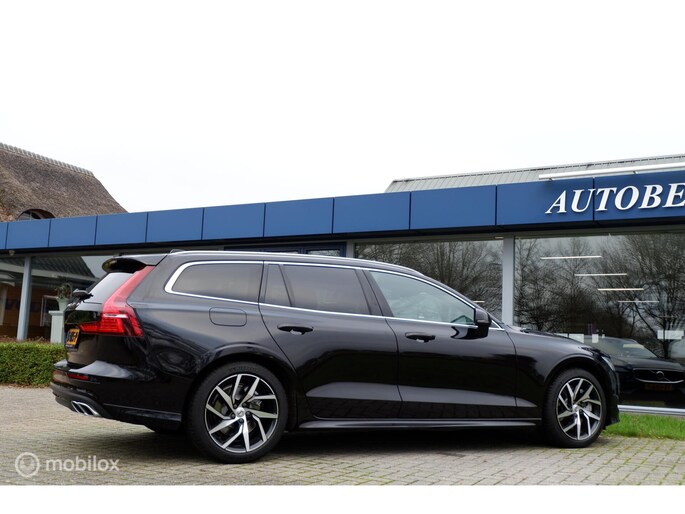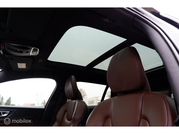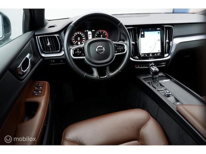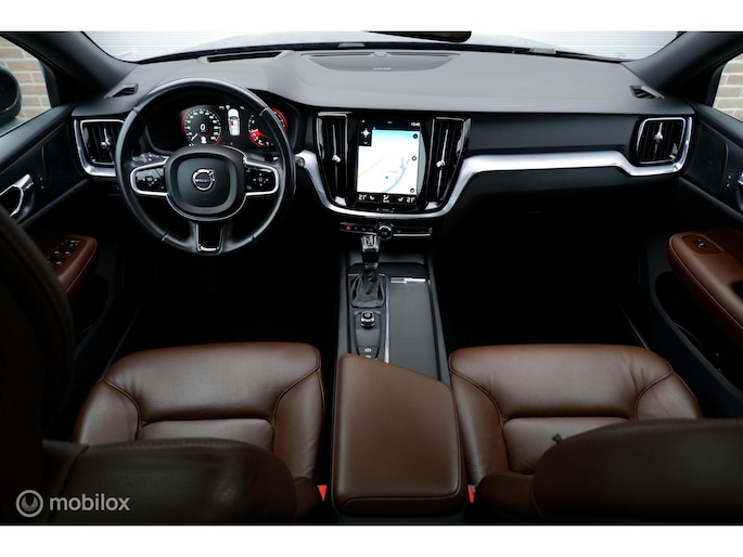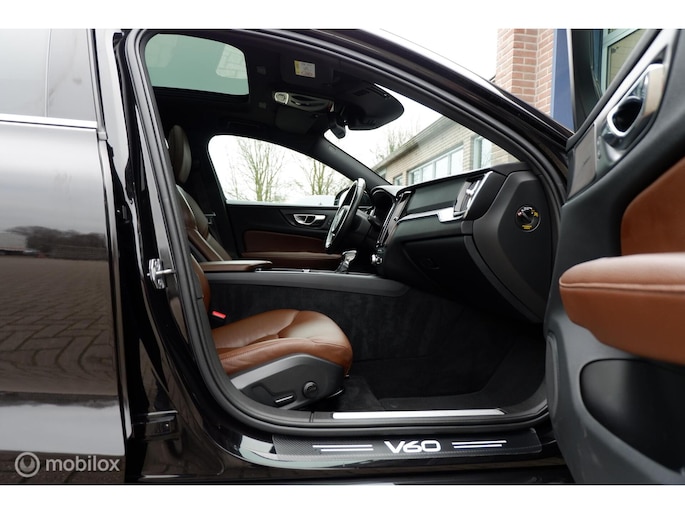 Fraaie en compleet uitgevoerde Volvo V60 modeljaar 2019, voorzien van de 250PK sterke T5 motor en 8 traps automatische transmissie! Deze sportief ogende V60 is uitgevoerd in Onyx Black Metallic exterieurlak, chromen raamomlijsting, extra getinte ramen vanaf b-stijl , Dubbele uitlaat eindpijpen en 18inch Lichtmetalen velgen (voorzien van goede allseason Michelin Cross Climate banden). Het interieur is voorzien van Maroon Brown lederen comfort stoelen, aluminium interieurafwerking en zwarte hemelbekleding. De auto heeft slechts 140.411km gereden (NAP) en is tot op heden uitstekend onderhouden! Naast de fraaie uitstraling is de auto ook voorzien van vele fabrieksopties waaronder een Elektrisch bedienbaar glazen panoramisch schuif-/kanteldak inclusief elektrisch bedienbaar zonnescherm, Grafisch Head-up Display, Park Assist camera achter, Parkeersensoren achter, Parkeerverwarming (standkachel) met timer, Verwarmbaar stuurwiel, Verwarmbare buitenste zitplaatsen tweede zitrij, Verwarmbare voorstoelen, Premium Audio by Harman Kardon, Digital Audio Broadcasting - DAB+, CD-speler in tunnelconsole, Elektrisch bediende achterklep, 12,3" digitaal instrumentenpaneel, Smartphone integratie: Apple® CarPlay / Android Auto incl. extra USB-poort etc. Sensus Connect, Sensus navigatie, Sensus pro met Volvo on Call, Zwarte hemelbekleding,18inch Lichtmetalen velgen, Elektrisch inklapbare buitenspiegels, Trekhaak semi elektrisch inklapbaar, Lederen bekleding, 9inch Touchscreen, LED koplampen met grootlichtassistent, Electronic Climate control, Cruise control, Exterieur Styling kit etc.