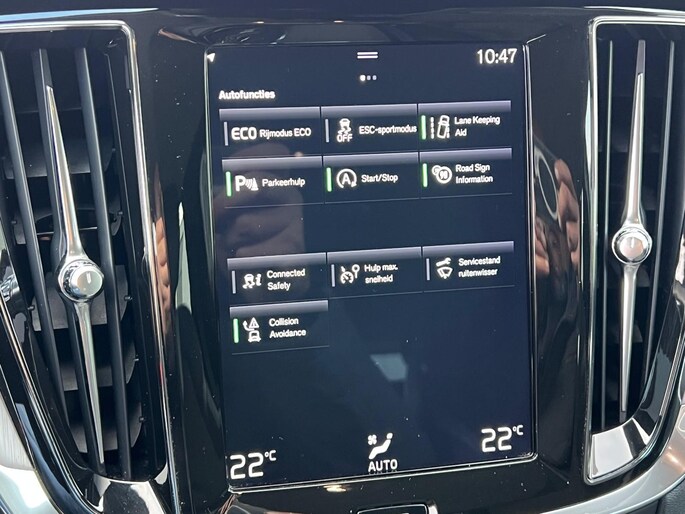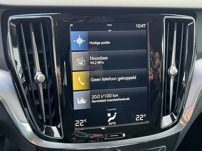Het digitale dashboard is een perfecte bijrijder. Alles benodigde informatie is permanent zichtbaar of opvraagbaar. Spraaksturing betekent dat u verschillende functies met uw stem kunt bedienen. Met uw smartphone maakt u overal contact met de auto. Remote services geven direct inzicht in uiteenlopende functies en zijn op afstand te activeren. Het navigatiesysteem met harde schijf geeft duidelijke instructies. Zo komt u veilig en vlot aan waar u moet zijn. Deze Volvo V60 is voorzien van sensoren aan de achterzijde om een achteropkomend verkeer waarschuwing te geven als de afstand tussen u en een achterligger te klein is. Natuurlijk behoren electronic climate control, parkeersensoren achter, regensensor, cruise control, automatisch dimmende binnenspiegel en lederen stuur ook tot de uitrusting van deze complete auto.