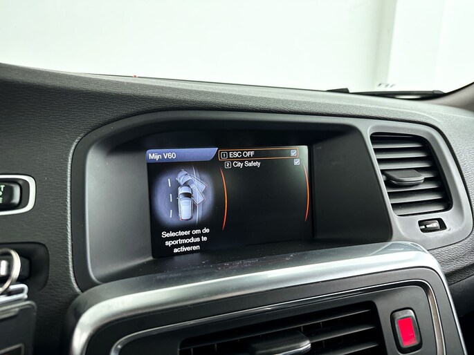 Zoals u mag verwachten van deze Volvo V60 is hij uitgerust met een reeks aan actieve veiligheidssystemen. Deze Volvo V60 blijft altijd alert. Zo wordt gebruik gemaakt van forward collision warning. Bij het mogelijke risico op een aanrijding met een voertuig voor u, slaat het systeem alarm.