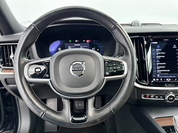 Deze Volvo V60 Cross Country staat garant voor vele veilige en comfortabele kilometers. Hij heeft een benzinemotor en een automatische transmissie. Het lederen interieur maakt het echt af. Koud of niet, de stoelverwarming met massagefunctie, stuurverwarming en verwarmbare achterbank maken elke rit comfortabel. Neem plaats op de comfortabele stoelen. Dankzij de elektrische bediening en het geheugen is het eenvoudig om hierin de beste zitpositie te vinden. Licht en lucht komen onbelemmerd binnen als het elektrisch bediende glazen panoramadak met één druk op de knop wordt geopend. Met een druk op de knop gaat de elektrische achterklep open. Bij de uitrusting van deze Volvo horen onder meer 20 inch lichtmetalen velgen, Full LED koplampen, geluidsisolerende ramen, in delen neerklapbare achterbank, LED-achterlichten en verstelbare lendensteunen. Omdat goed geïnformeerd rijden tegenwoordig om veel meer draait dan alleen snelheid en brandstofpeil, laat het digitale dashboard alle functies zien die u nodig heeft. De 360 graden camera op deze auto is een innovatieve functie die de obstakels rondom de auto in beeld brengt voor een optimaal zicht. Adaptive cruise control is veilig en comfortabel. De snelheidsregelaar houdt automatisch afstand tot het voertuig dat voor u rijdt. Het infotainmentsysteem bedient u met uw vingers of met uw stem, met dank aan de geïntegreerde stembediening. Communiceren met uw auto? Dat gaat via remote services. Met uw smartphone maakt u waar dan ook contact om allerlei functies te checken of te activeren. Deze Volvo is voorzien van high performance audiosysteem, navigatiesysteem met harde schijf, electronic climate control, draadloos opladen, DAB ontvangst en regensensor. De Volvo V60 Cross Country is ook voorzien van ADAS. Deze Advanced Driver Assistence Systems fungeren als extra ogen en oren: ze houden voor u de weg in de gaten en grijpen in wanneer dat nodig is. Altijd uw blik op de weg: met de head-up display hoeft u geen moment uw ogen te verplaatsen. De info wordt geprojecteerd in het zichtveld voor u. Onderweg fungeert de verkeersbord-detectie als het ware als uw bijrijder en attendeert u op de verkeersborden langs de weg. Het Lane-keeping systeem registreert permanent of u binnen de lijnen van de rijstrook blijft; dwaalt u onbedoeld af, dan waarschuwt het systeem en corrigeert de koers. In deze Volvo vinden we verder een dodehoekdetectie, forward collision warning system, hill hold functie, brake assist, vermoeidheidsherkenning en bandenspanningcontrolesysteem. Bel nu onze verkoopadviseur voor een proefrit!