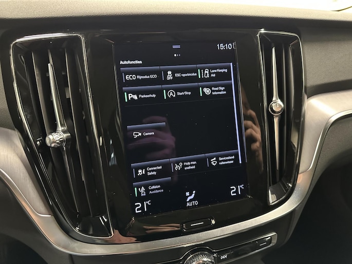 Zoals u mag verwachten van deze Volvo V60 is hij uitgerust met een reeks aan actieve veiligheidssystemen. Onderweg zorgt verkeersborddetectie ervoor dat u geen waarschuwingsbord mist. Minder remweg, meer veiligheid: de Brake Assist haalt het beste uit het remsysteem als het erop aankomt. Ook helpen het hill hold functie en bandenspanningcontrolesysteem, uw rit tot een veilige rit te maken.