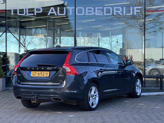 De auto is voorzien van een trekhaak en is een uitstekende caravantrekker. Op een drukke weg heeft u soms ogen in uw achterhoofd nodig. De sensoren aan de achterzijde nemen die functie over en geven een achteropkomend verkeer waarschuwing als een achterligger te dicht op u zit. Het spreekt voor zich dat een auto als deze ook van electronic climate control is voorzien. Muziek aan, muziek uit? Het kan met een simpele vingerbeweging dankzij de audiobediening op het stuur! Een plekje vinden in de binnenstad is één, inparkeren is twee. Voor dat laatste heeft deze Volvo V60 prima parkeersensoren die u een handje helpen. En deze auto heeft ook regensensor, cruise control, automatisch dimmende binnenspiegel, isofix-aansluiting, centrale deurvergrendeling met afstandsbediening en bagage afdekhoes als standaard uitrusting.
