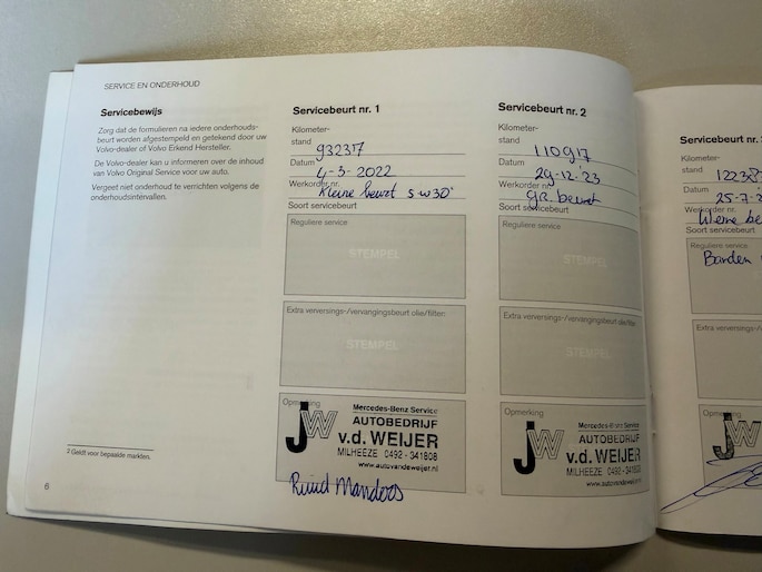 Onderhoudsboekjes: Aanwezig