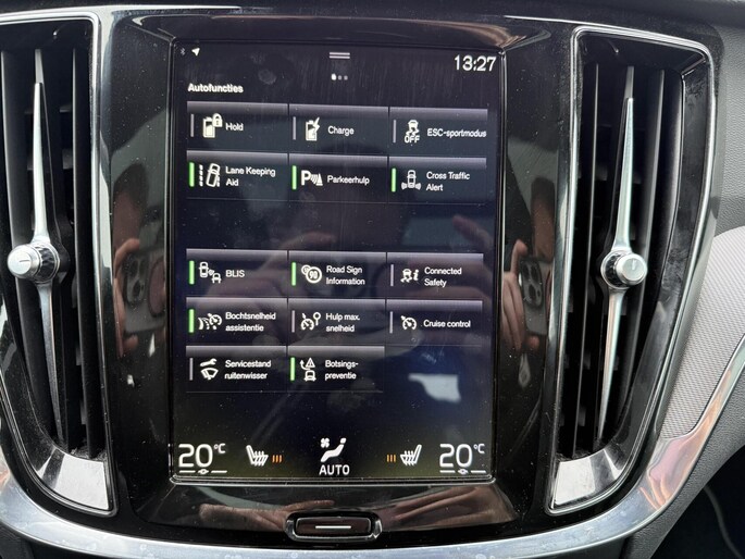 Pragmatisch en veilig als deze auto is, beschikt hij over diverse veiligheidssystemen. U rijdt ook veiliger omdat deze auto voor u de verkeersborden langs de weg kan lezen. De belangrijkste borden worden op uw instrumentarium geprojecteerd, zodat u ze niet kunt missen. Ongemerkt buiten de rijstrook raken? Nee hoor, het Lane-keeping systeem waarschuwt en corrigeert. De actieve dodehoekdetectie helpt ongelukken te voorkomen. In deze Volvo vinden we verder een forward collision warning system, hill hold functie, brake assist, vermoeidheidsherkenning en bandenspanningcontrolesysteem.