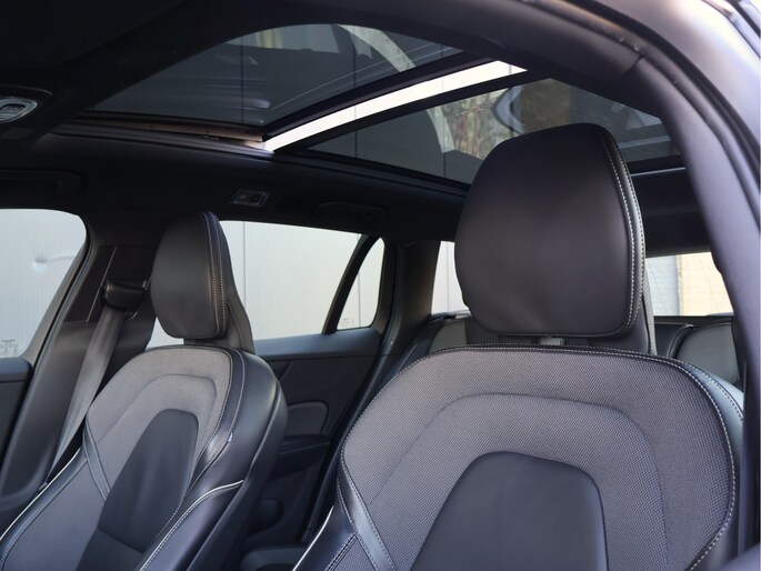 Het interieur ademt klasse met zijn Charcoal R-Design bekleding, zwarte hemelbekleding en hoogwaardige Metal Mesh inleg, wat samen een sportieve cockpit vormt die rust en focus uitstraalt.