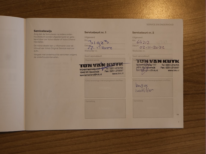 Onderhoudsboekjes: Aanwezig