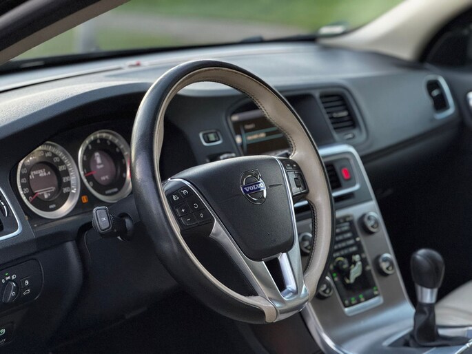 Te weinig afstand tussen u en de achterligger? De sensoren registreren het direct en de achteropkomend verkeer waarschuwing geeft een signaal. Ook is de auto voorzien van electronic climate control. Met de audiobediening op het stuur heeft u altijd twee handen beschikbaar om te rijden. Een plekje vinden in de binnenstad is één, inparkeren is twee. Voor dat laatste heeft deze Volvo V60 prima parkeersensoren die u een handje helpen. Bij slecht weer houdt u graag de handen aan het stuur. De regensensor regelt automatisch hoeveel hulp u van de ruitenwissers nodig heeft. Met cruise control, automatisch dimmende binnenspiegel, lederen stuur, centrale deurvergrendeling met afstandsbediening, bagage afdekhoes en boordcomputer is deze Volvo helemaal compleet.