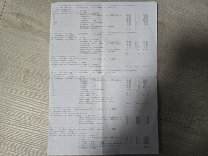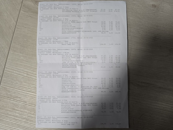 Onderhoudsboekjes: Aanwezig