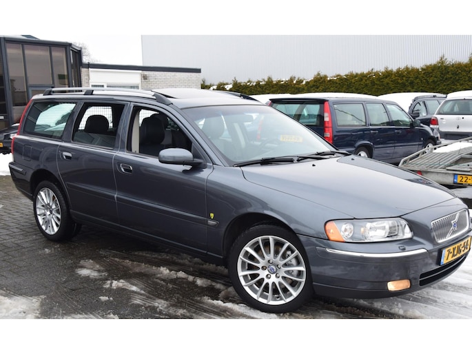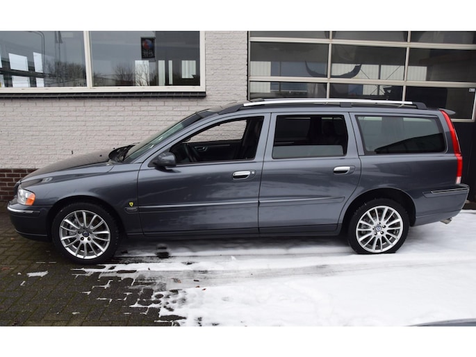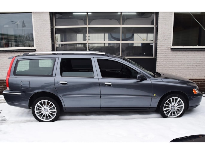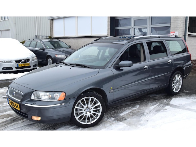 Correct onderhouden handgeschakelde Volvo V70 2.4 in Titanium Grey metallic met Xenon, dakje, trekhaak , half leer, & verse Apk.