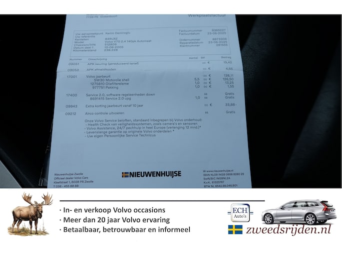 Optioneel afleverpakket (€ 695): Zweedsrijden afleverbeurt: Bij Zweedsrijden afleverbeurt krijg je: * Grote beurt * Nieuwe APK keuring * Volledige technische controle + verhelpen eventuele gebreken. * Slijtagedelen kunnen tot de volgende beurt mee * 3 maand garantie draaiende delen motor + bak * Verhelpen eventuele elektrische storingen Met meer dan 20 jaar Volvo expertise weten we waar de zwakke plekken zitten en hoe deze te verhelpen zijn.