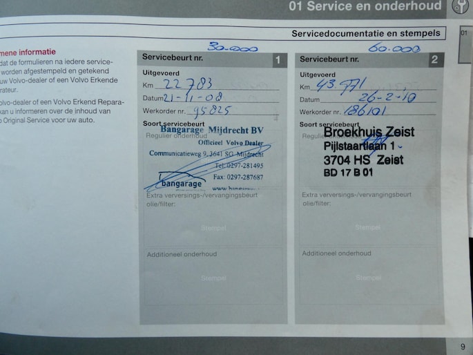 Onderhoudsboekjes: Aanwezig