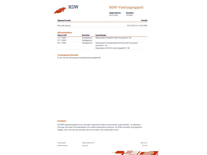 Kilometerstand gecontroleerd