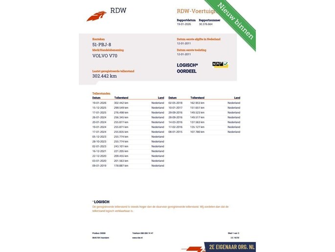 Kilometerstand gecontroleerd