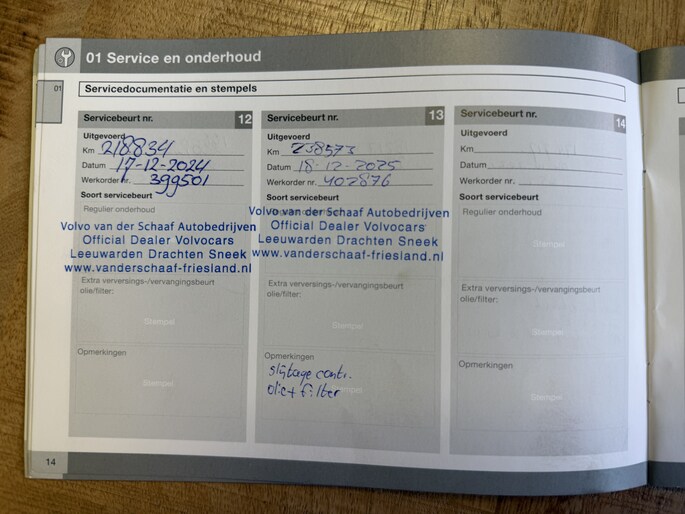 Onderhoudsboekjes: Aanwezig