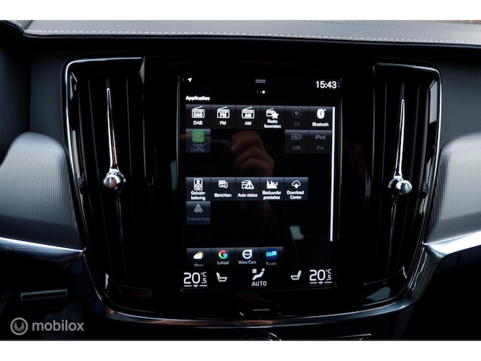 Zeer nette en rijk uitgeruste Volvo V90 R-Design Business Sport voorzien van de betrouwbare en 210PK sterke 2.0 T4 motor (Polestar Engineered!) en 8 traps automatische transmissie ! Deze bijzonder fraaie V90 is uitgevoerd in de Osmium Grey metallic exterieurlak, 19inch Lichtmetalen velgen en extra getinte ramen vanaf b-stijl. Het interieur is voorzien van Charcoal Geperforeerd Nappa lederen bekleding met contourstoelen (sport) , zwarte hemelbekleding en Metal Mesh interieurafwerking. Naast de netheid en fijne rijeigenschappen is deze auto ook voorzien van vele fabrieksopties waaronder Premium Audio by Harman Kardon (14 speakers), Achteruitrijcamera, Grafisch Head-up Display, Elektrisch bedienbaar glazen panoramisch schuif-/kanteldak inclusief elektrisch bedienbaar zonnescherm, Parkeerverwarming (standkachel) met timer, Adaptive Cruise Control met Pilot Assist, BLIS met Lane Change Merge Assist en Steer Assist, Cross Traffic Alert en Collision Warning & Mitigation Support achter, Parkeersensoren voor+achter, LED mistlampen met bochtverlichting, Elektrisch verstelbare bestuurderstoel met geheugenfunctie, Elektrisch verstelbare passagiersstoel , Geperforeerd Nappa lederen bekleding, Elektrisch verstelbare zittingverlenging voor, Smartphone integratie: Apple® CarPlay / Android Auto, Drive Mode Settings, Trekhaak met semi elektrisch inklapbare kogel, Elektrisch bedienbare achterklep, Sensus navigatie, Keyless entry/drive, Verwarmbare voorstoelen,, Verwarmbare achterbank, Verwarmbaar stuurwiel Zongordijnen geintegreerd in achterportieren , Zwarte hemelbekleding , Verlichtingspack 2: sfeerverlichting , Lederlook bekleed dashboard en bovenzijde deurpanelen, Elektrisch verstelbare lendesteunen (viervoudig), Elektrisch neerklapbare achterbank en hoofdsteunen achter, Drive mode settings, Digital Audio Broadcasting - DAB+, CD-speler in tunnelconsole, Automatisch dimmende binnen- en buitenspiegels, Sensus Pro met Volvo On Call, Volvo Sensus Connect: 9" Touchscreen enz.