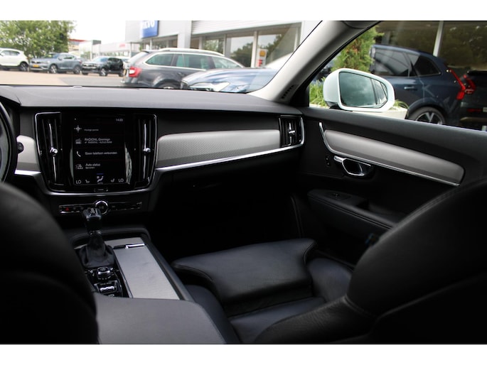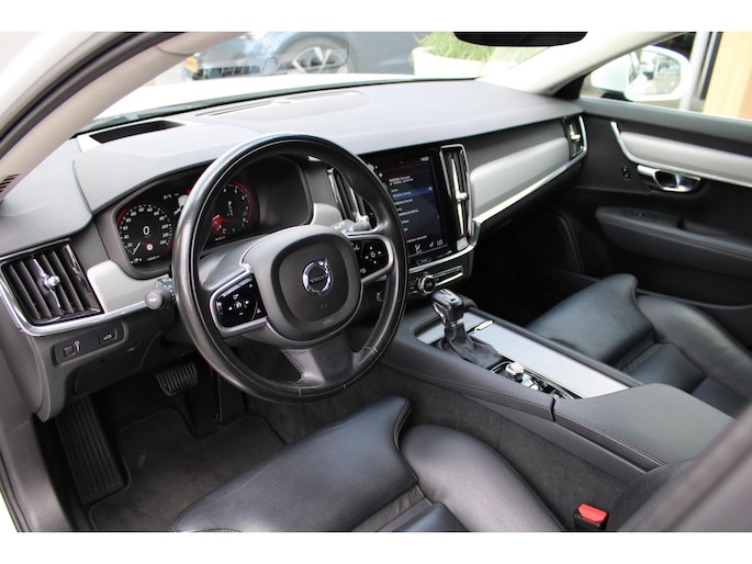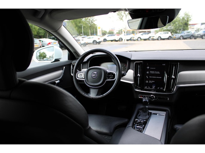 Met zijn ruimte en zijn prestaties is dit de auto die bij u past. De krachtige motor geeft deze Volvo uitstekende prestaties. Terwijl u de bagage inlaadt via de elektrisch bedienbare achterklep, nemen uw passagiers al plaats in het lederen interieur. Mooi! Beide verwarmbare voorstoelen hebben een geavanceerde massagefunctie, zodat u ook na een lange rit soepel uitstapt. Net als uw bijrijder. Dankzij de elektrische stoelbediening is het gemakkelijk om de optimale zitpositie te vinden. Natuurlijk behoren 19 inch lichtmetalen velgen, LED koplampen, extra getint glas, in delen neerklapbare achterbank, LED-achterlichten en verstelbare lendensteunen ook tot de uitrusting van deze complete auto. Snelheid, omgevingsinfo, navigatie en communicatie... Het digitale dashboard geeft alles realtime weer. Adaptive cruise control houdt de ingestelde snelheid vast en houdt afstand tot het voertuig voor u. Bedient u de auto liever met uw stem? Dan is het goed om te weten dat spraakbediening aanwezig is. Onder alle omstandigheden een volmaakt geluid onderweg: het high performance audiosysteem zorgt ervoor. Het navigatiesysteem met harde schijf is uw vertrouwde gids, waarheen de reis ook gaat. Deze auto is voorzien van achteropkomend verkeer waarschuwing, electronic climate control, parkeersensoren achter, regensensor, keyless entry en automatisch dimmende buitenspiegels. Zoals u mag verwachten van deze Volvo V90 is hij uitgerust met een reeks aan actieve veiligheidssystemen. In het instrumentarium ziet u tijdens de rit ook de belangrijkste verkeersborden aangegeven, die de auto automatisch voor u leest. Een camera houdt de juiste koers binnen de rijstrook in de gaten en het Lane-keeping systeem corrigeert bij afwijkingen. Het laatste wat u wilt is dat u achter het stuur indommelt. Om dat te voorkomen is deze auto uitgerust met vermoeidheidsherkenning. De auto is ook uitgerust met dodehoekdetectie, hill hold functie, brake assist en bandenspanningcontrolesysteem. Meer weten? Onze verkoper maakt graag een afspraak om u alles te laten zien!